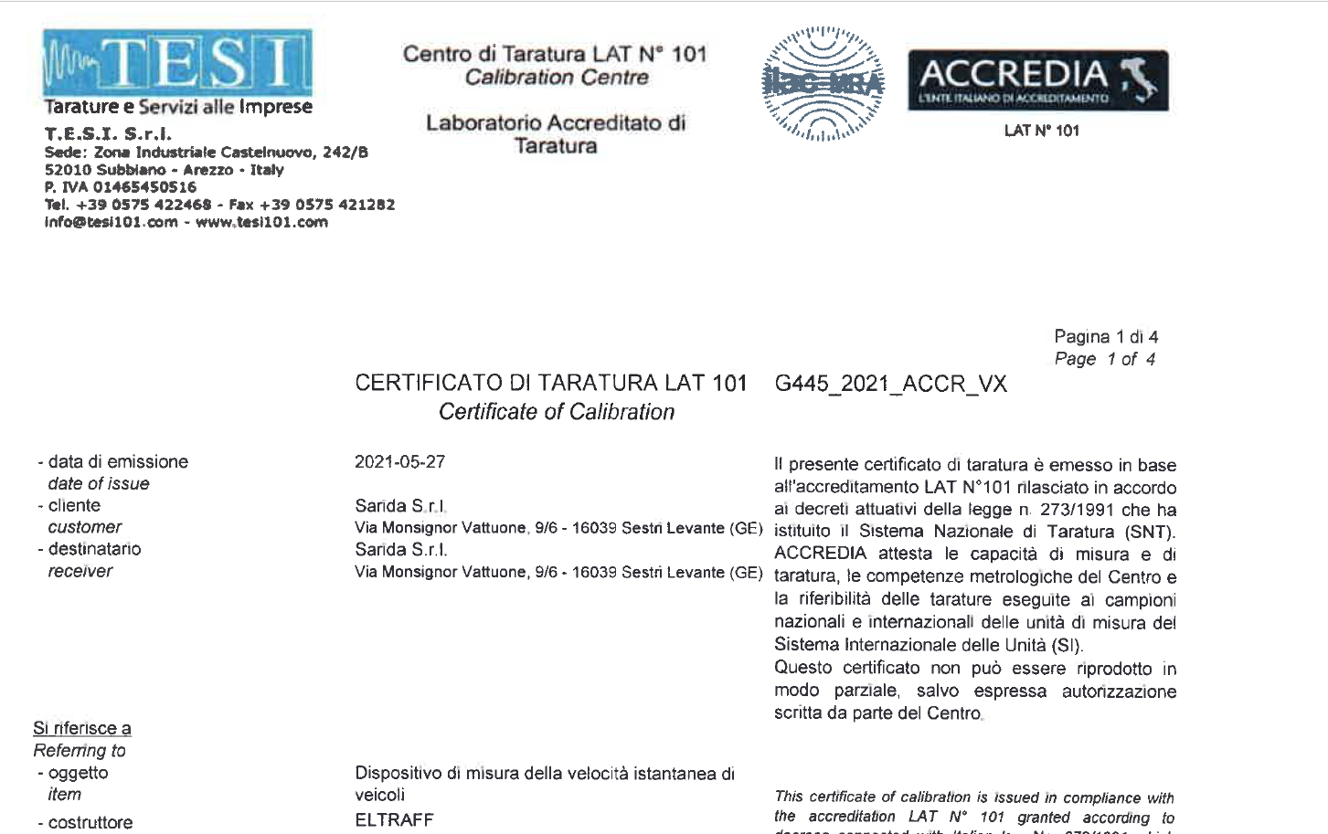 accertamento effettuato con i dispositivi istallati in postazione fissa ed automatizzata di